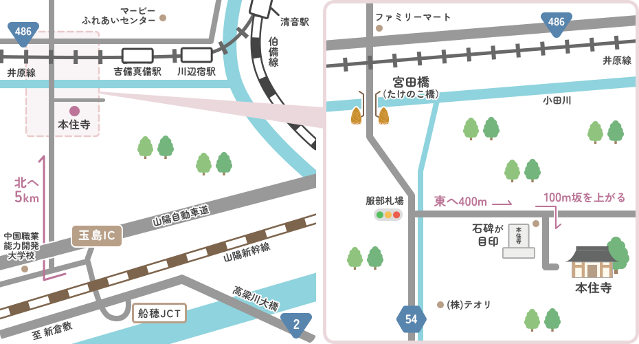 ・JR新倉敷駅から車(タクシー)で10分程度 (新倉敷駅:山陽本線、山陽新幹線)