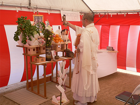 午前10時、爽やかに晴れた天候の中、本住寺地鎮祭を執行しました。