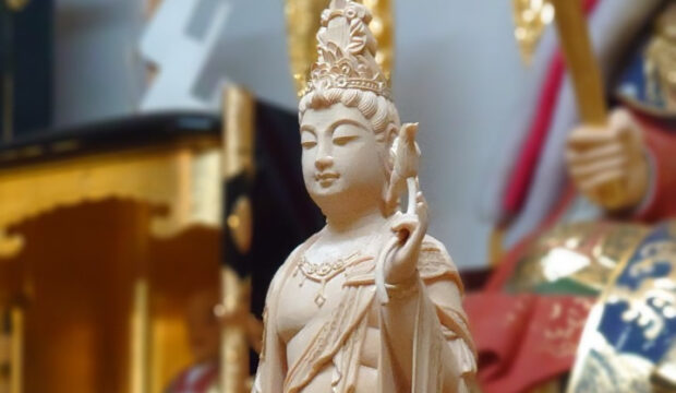 続いて、午後2時から本堂の中の物を運び出す作業をしました。何より嬉しかったのは、御宝前下の開かずの扉の中からお釈迦様の誕生仏像を見つけられたことです。