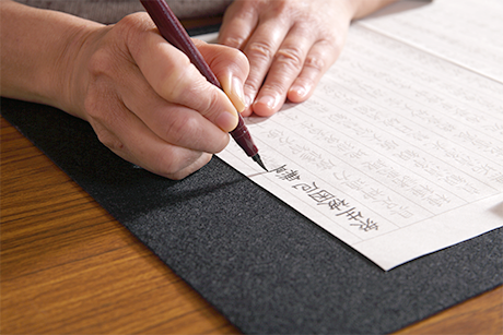 お写経は手本をなぞるだけですので、誰でも簡単に出来ます。お道具もお寺に揃っておりますので、まずは手ぶらでお気軽に、お楽な時間にお越しくださいませ。